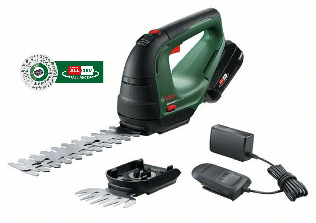 Úvod » ZÁHRADNÉ NÁRADIE » Nožnice na kríky » AKU nožnice na kríky i trávu Bosch AdvancedShear 18V-10/1x2,0Ah