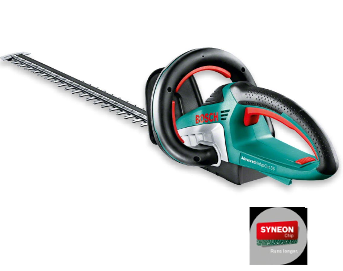 Výkonný 36 V lítium-iónový akumulátor umožňuje ostrihať až 300 m² živého plotu na jedno nabitie akumulátora
