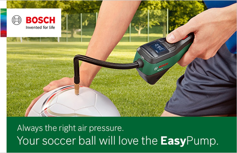 Malé náradie s vysokým výkonom: Bosch EasyPump je intuitívny vzduchový kompresor na akékoľvek použitie až do tlaku 10,3 baru. Meranie jednotiek v reálnom čase a funkcia predvoľby podporujú praktické a presné nafukovanie.