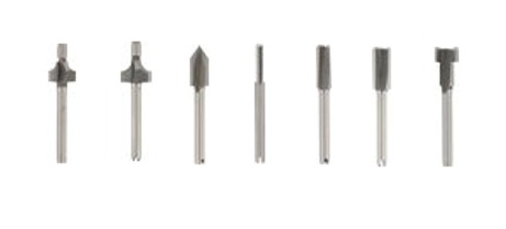 7-dielna súprava viacúčelových frézovacích bitov obsahuje všetkých sedem vysokokvalitných frézovacích bitov Dremel. Vďaka tejto súprave príslušenstva môžete vykonávať rôzne typy frézovania. Môže frézovať hrany, rohy, priamočiaro, otvory, slová a písmená do rôznych materiálov vrátane, okrem iného, aj do tvrdého dreva, mäkkého dreva, preglejky a laminátu. Môže frézovať drážky do dverí na uchytenie nových kľučiek, navrhnúť a vyfrézovať vlastnú kuchynskú linku alebo si vytvoriť vaše súpisné číslo domu. Bity si môžete pohodlne ukladať do dodávanej drevenej škatule.