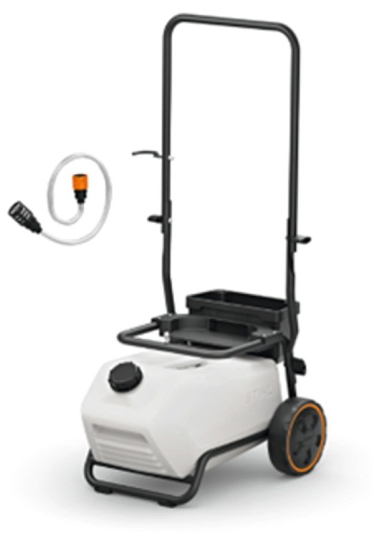 Vozík s nádržou na vodu umožňuje rýchlu, nezávislú prevádzku akumulátorových vysokotlakových čističov STIHL REA 60 PLUS a STIHL REA 100 PLUS bez akejkoľvek prípojky vody alebo napájania, ako aj pohodlnú prepravu prístroja a nádrže na vodu.